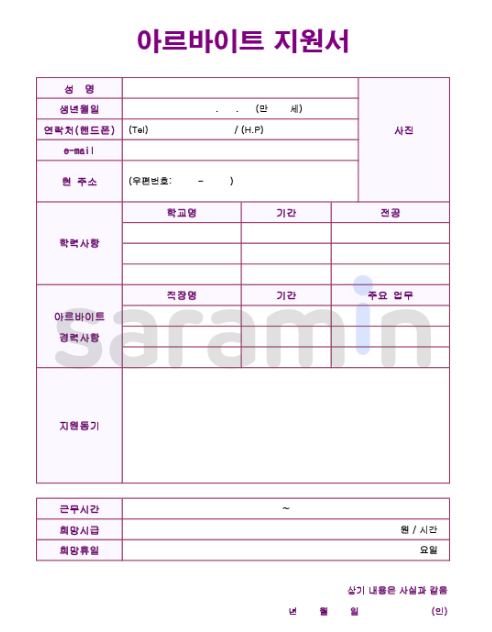 아르바이트 지원서