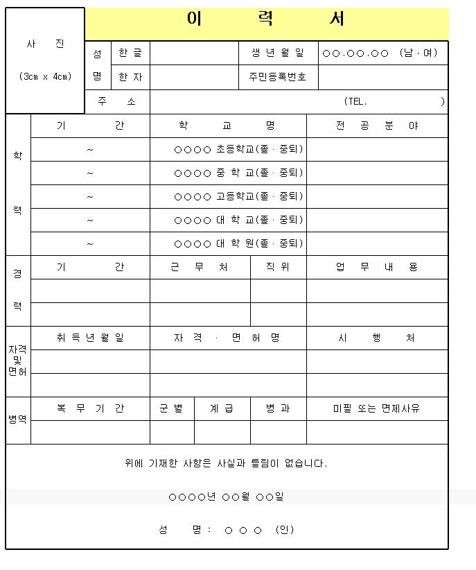 '고용노동부' 이력서 양식
