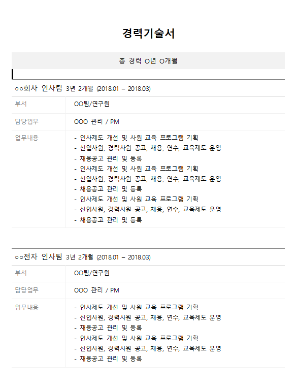 경력기술서