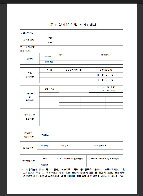 채용사이트의 이력서 양식을 다운로드할 수 있습니다. 원하시는 이력서의 양식으로 다운로드하여 지원서를 작성 및 제출하시기 바랍니다. 여러분의 취업을 응원합니다.