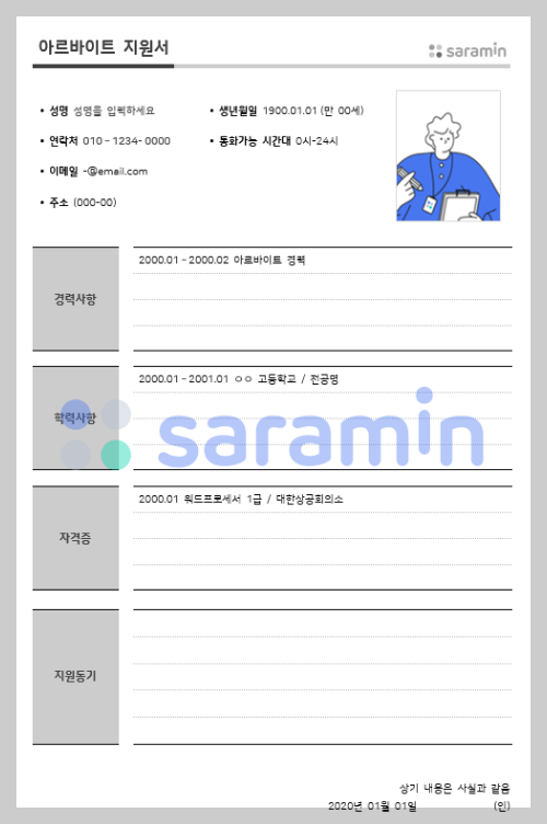 '사람인' 아르바이트 이력서 양식 다운로드