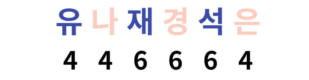 2. 그다음 이름 한 글자마다 획을 세어서 숫자로 변환합니다.