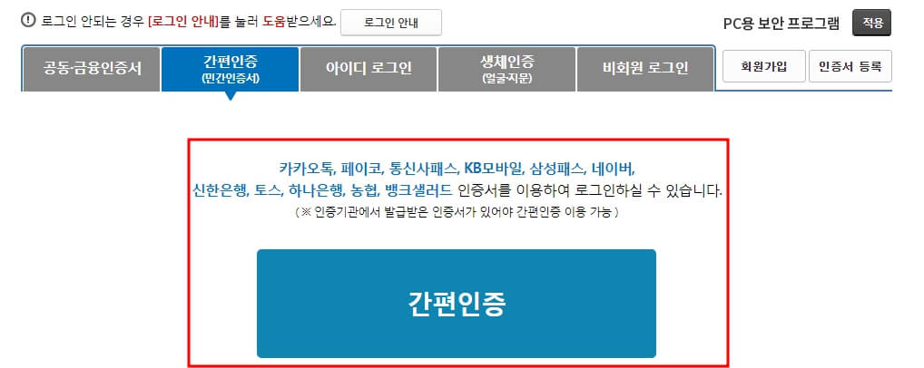 3. 간편 인증으로 로그인합니다.