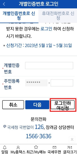 홈택스 신청 바로가기