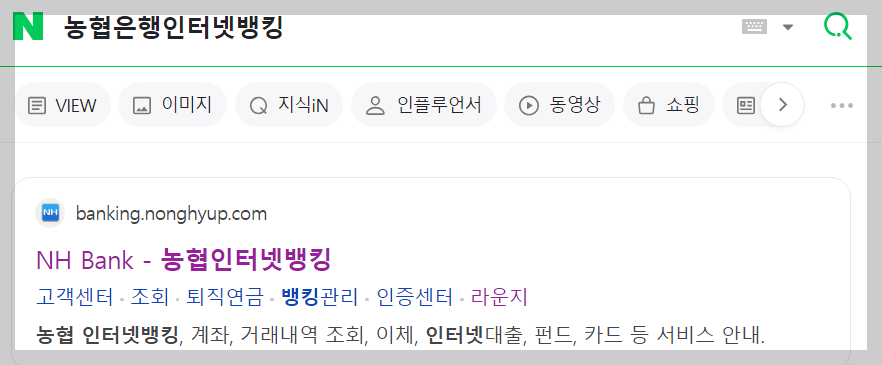 'NH농협 인터넷뱅킹'을 검색하여 공식 홈페이지에 접속합니다.